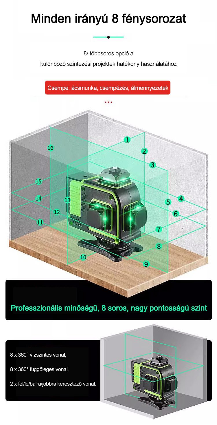 Professzionális, nagy pontosságú vízszintező
